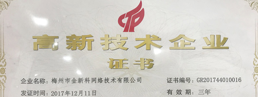 2017年12月11日,國家高新技術(shù)企業(yè)認(rèn)定服務(wù)平臺(tái)對外公布了“廣東省2017年第二批擬認(rèn)定高新技術(shù)企業(yè)名單”,梅州市金新科網(wǎng)絡(luò)技術(shù)有限公司作為一家互聯(lián)網(wǎng)信息化服務(wù)類高科技產(chǎn)業(yè)的公司,順利通過認(rèn)定,榮登榜單之中!